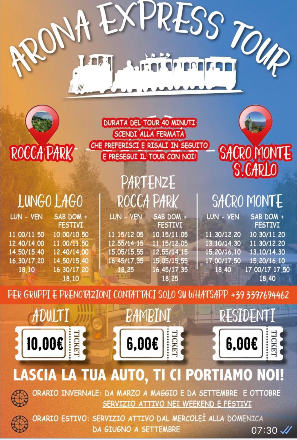 orario estivo: partenza dal Lungo Lago Largo Pietro Vidale